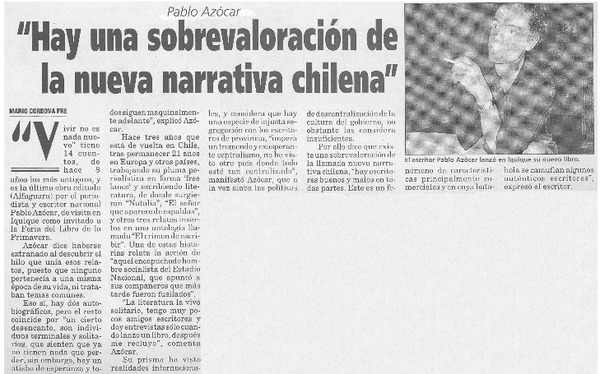 "Hay una sobrevaloración de la nueva narrativa chilena" [artículo] Mario Córvoda Fre.