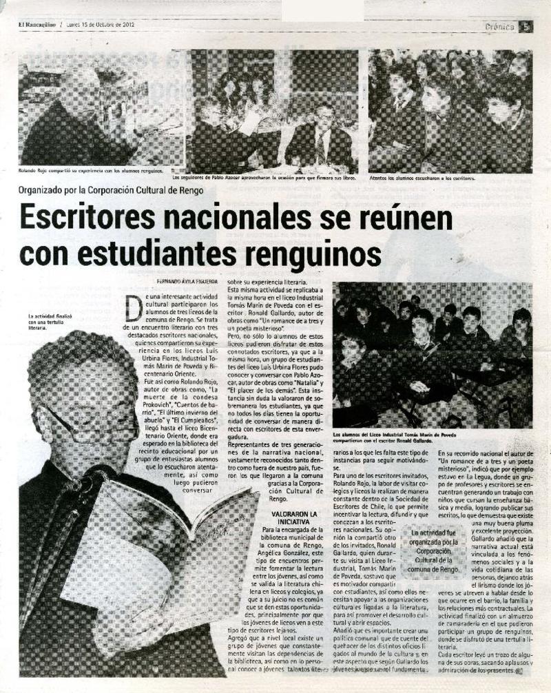 Escritores nacionales se reúnen con estudiantes renguinos [artículo] Fernando Ávila Figueroa.