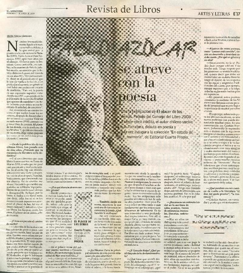 Pablo Azócar se atreve con la poesía [entrevista] [artículo] : María Teresa Cárdenas.