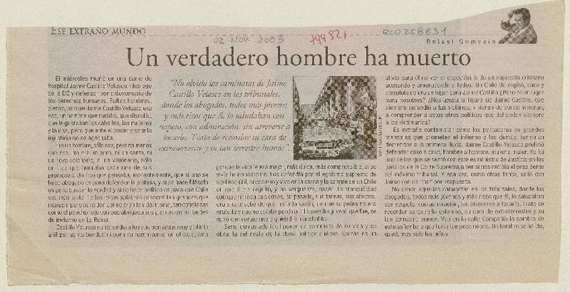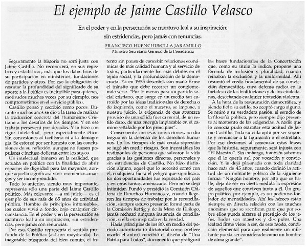El ejemplo de Jaime Castillo Velasco [artículo] Francisco Huenchumilla Jaramillo.