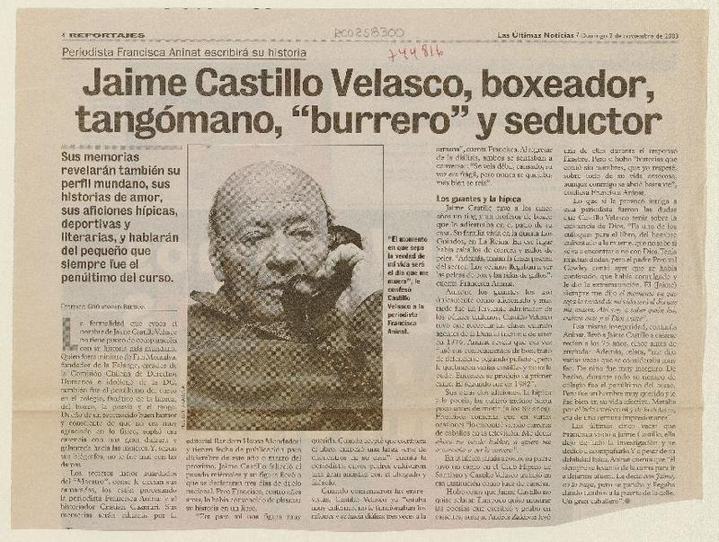 Jaime Castillo Velasco, boxeador, tangómano, "burrero" y seductor [artículo] Federico Grünewald Beltrán.