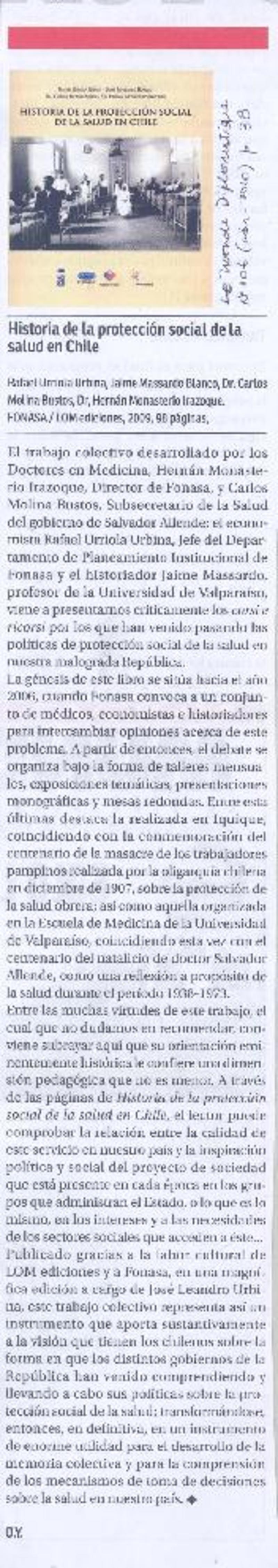 Monasterio Irazoque, Hernán - Autores chilenos - Massardo, Jaime - Urriola Urbina, Rafael - Historia de la protección social de la salud en Chile - Molina Bustos, Carlos