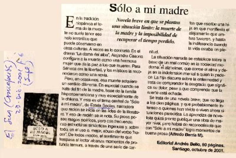 Autores chilenos - Socías, Estela - Sólo a mi madre