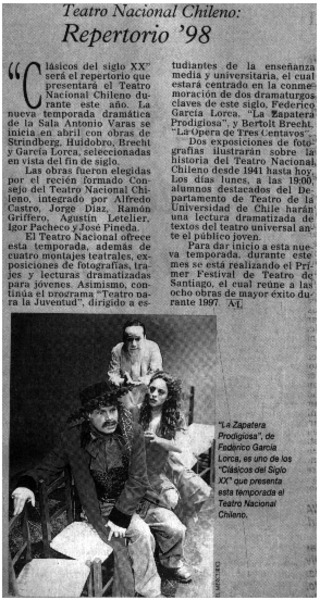 Teatro Nacional Chileno : repertorio '98 [artículo] AyL.