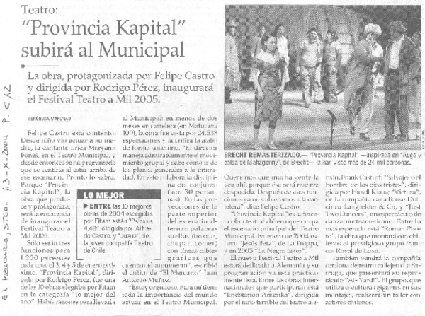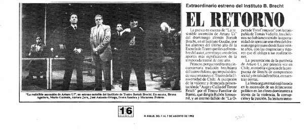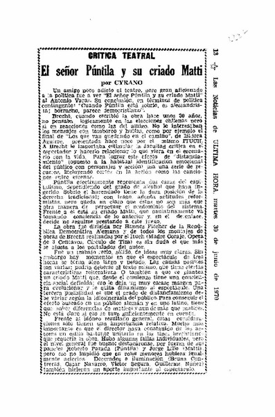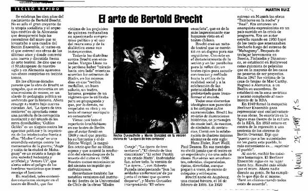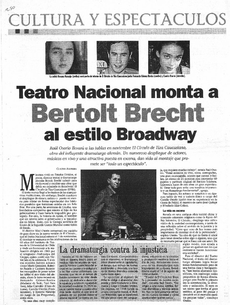 Tetro Nacional monta a Bertolt Brecht al estilo Broadway [artículo] Claudio Aguilera.