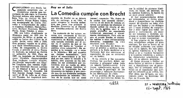 La comedia cumple con Brecht. [artículo]