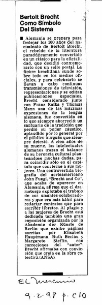 Centenario de Bertolt Brecht. [artículo]