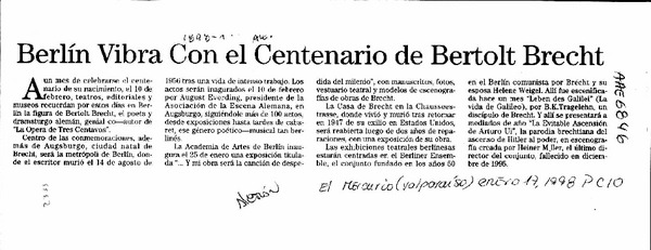 Berlín vibra con el centenario de Bertolt Brecht. [artículo]