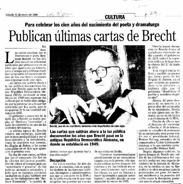 Publican últimas cartas de Brecht. [artículo]