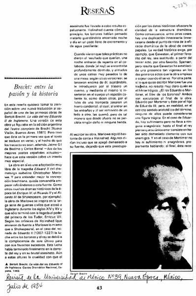 Brecht: entre la pasión y la historia [artículo] James Valender.