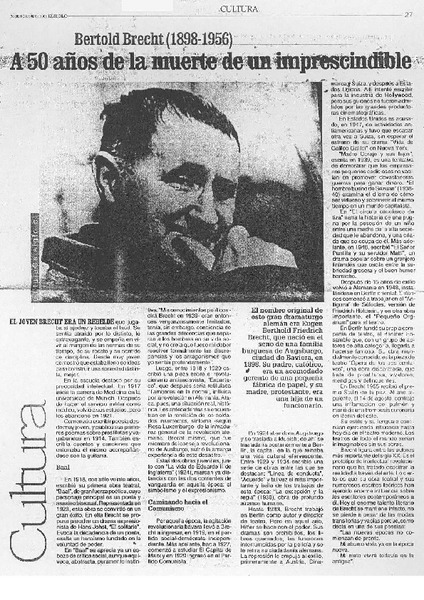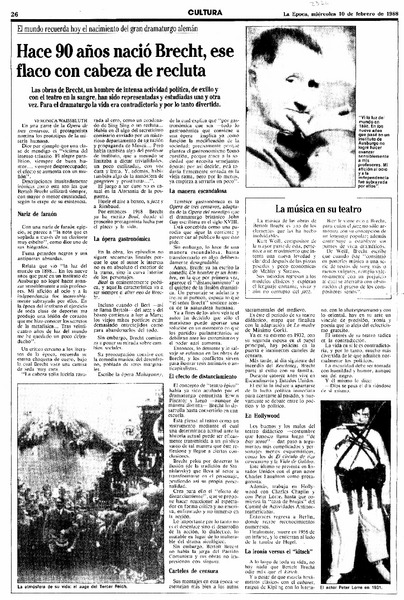 Hace 90 años nació Brecht, ese flaco con cabeza de recluta [artículo] Veronica Waissbluth.