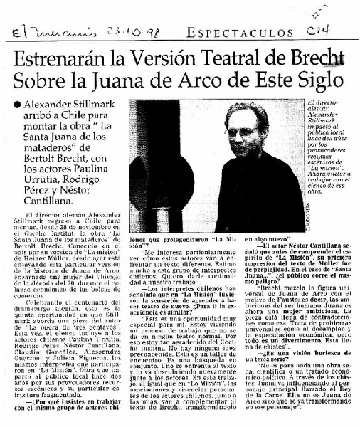Estrenarán la versión teatral de Brecht sobre la Juana de Arco de este siglo. [artículo]