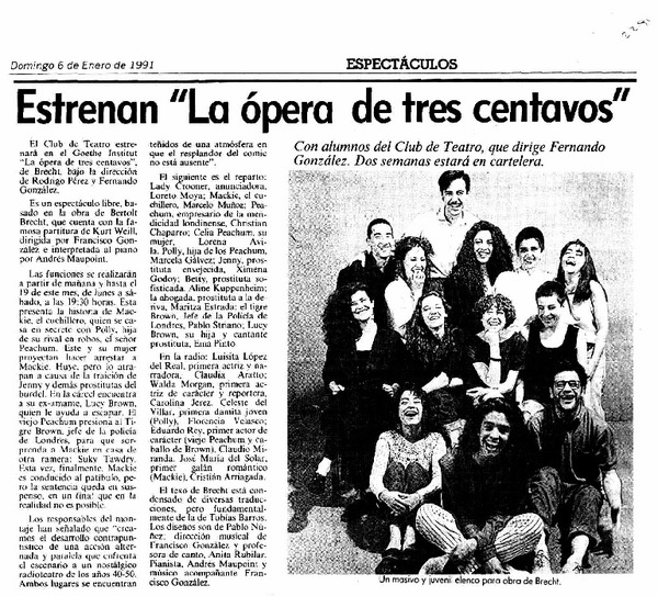 Estrenan "La ópera de tres centavos". [artículo]