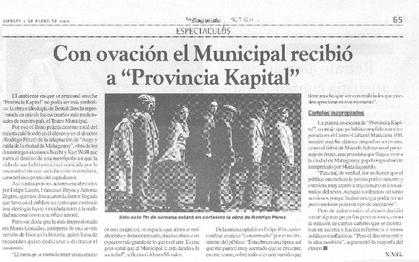 Con ovación el Municipal recibió a "Provincia Kapital" [artículo] X. V. G.