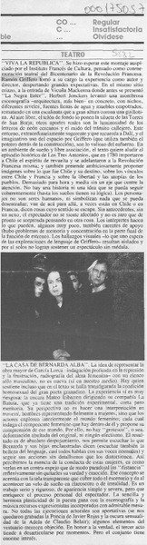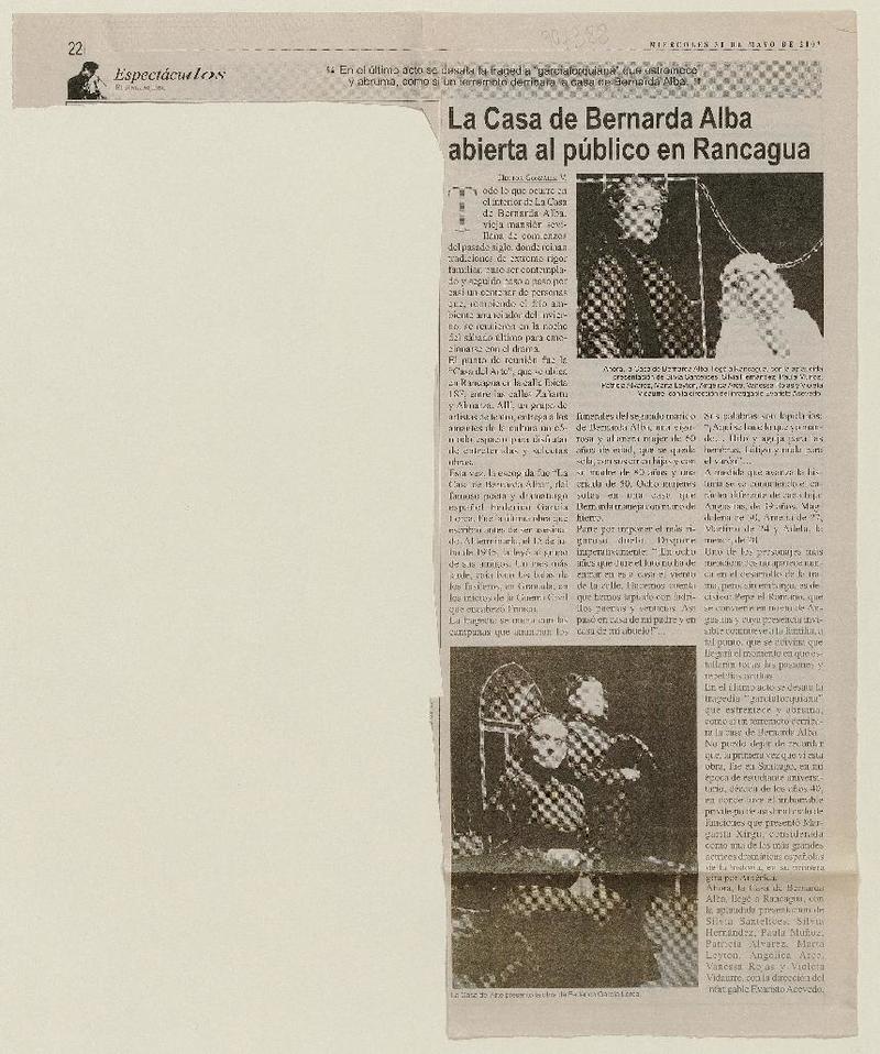 La Casa de Bernarda Alba abieta al público en Rancagua [artículo]Héctor González V.