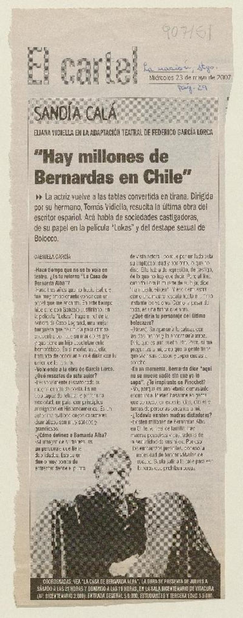 "Hay millones de Bernardas en Chile" [entrevista] [artículo] : Gabriela García.