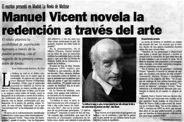 Manuel Vicent novela la redención a través del arte [artículo] Elsa Fernández-Santos.