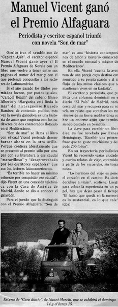 Manuel Vicent ganó el Premio Alfaguara [artículo].