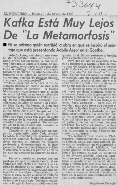 Kafka está muy lejos de "La metamorfosis" [artículo] Rigoberto Carvajal.