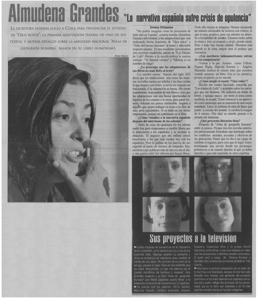Autoras chilenas - Autoras españolas - Entrevista - Grandes, Almudena - Izquierdo, María - Modelos de mujer - Atlas de Geografía humana - Ojos rotos : historia de aparecidos