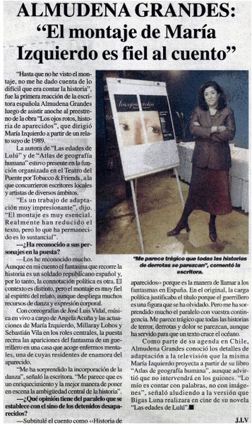 El montale de María Izquierdo es fiel al cuento : [entrevistas] [artículo]