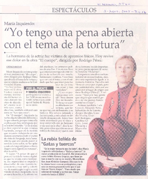 María Izquierdo : "Yo tengo una pena abierta con el tema de la tortura" [artículo] Verónica Marinao.