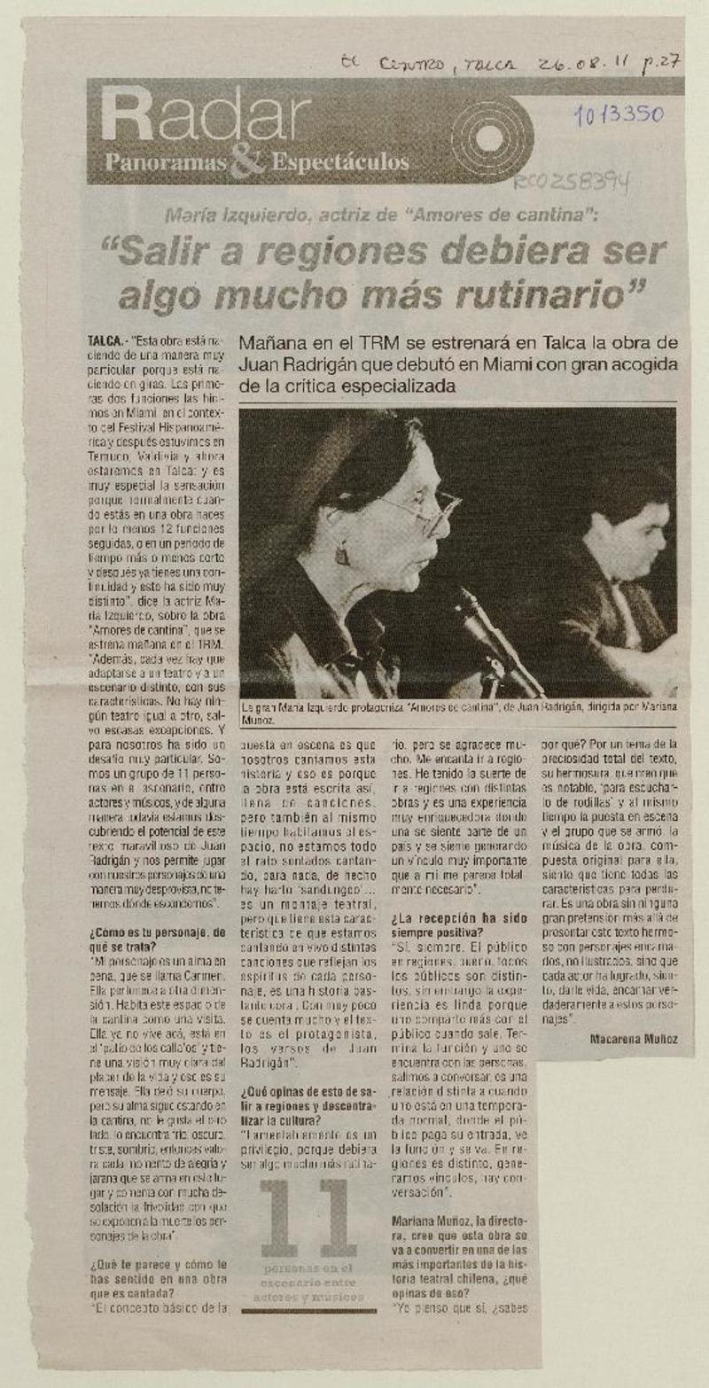Salir a regiones debiera ser algo mucho más rutinario (entrevista) [artículo] Macarena Muñoz.