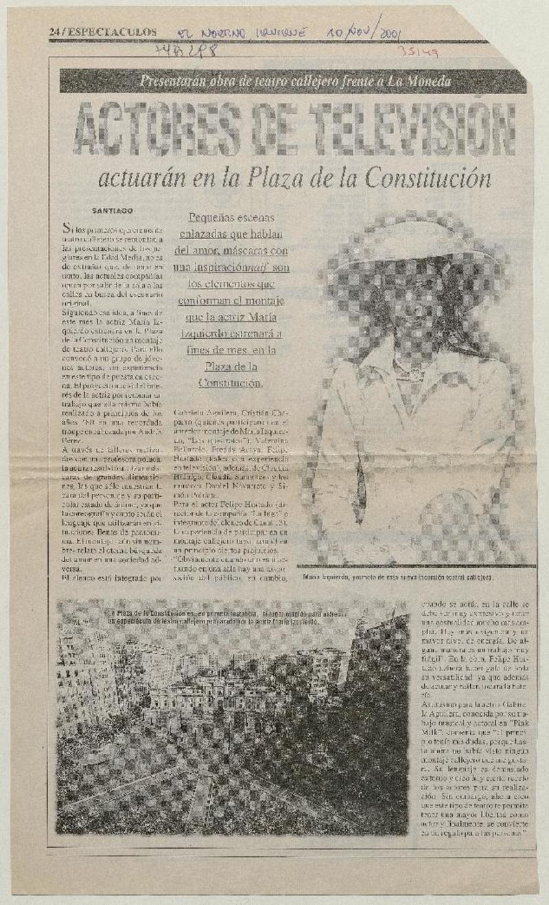 Actores de televisión actuarán en la Plaza de la Cosntitución. [artículo]