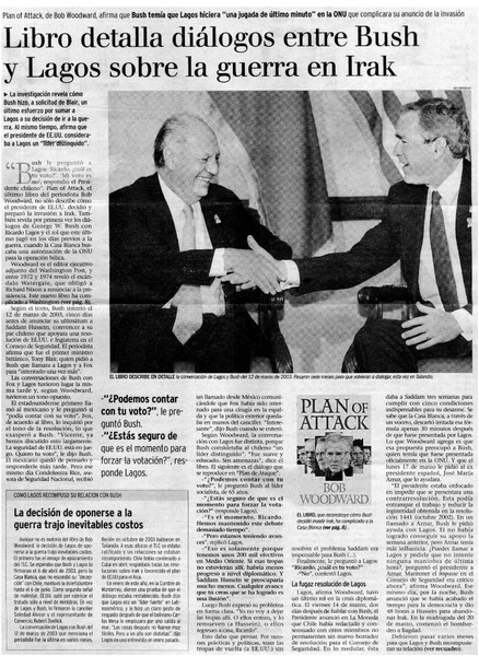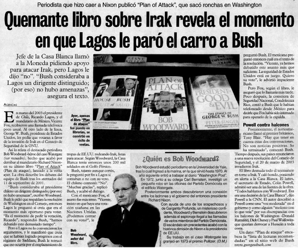 Libro detalla diálogos entre Bush y Lagos sobre la guerra en Irak [artículo]