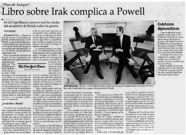 Libro sobre Irak complica a Powell [artículo] Steven Weisman.
