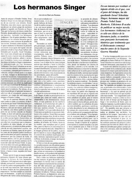 Los hermanos Singer [artículo] Joyce Ventura Nudman.