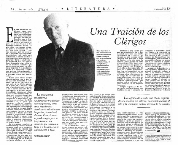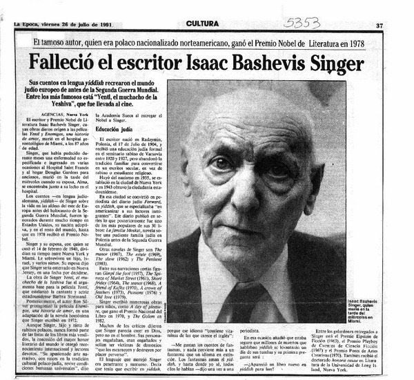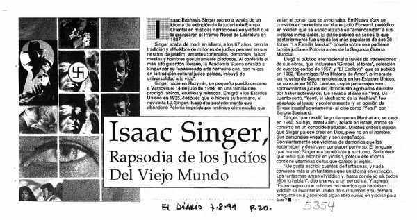 Falleció el escritor Isaac Bashevis Singer. [artículo]