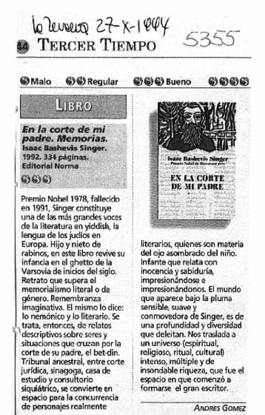Bashevis Singer, las agonías del anhelo [artículo] Adolfo Casteñón.