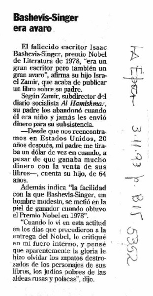 Bashevis-Singer era avaro. [artículo]