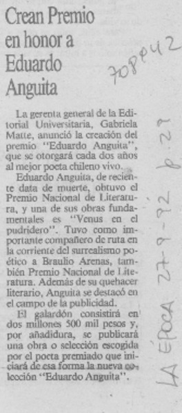 Crean premio en honor a Eduardo Anguita. [artículo]