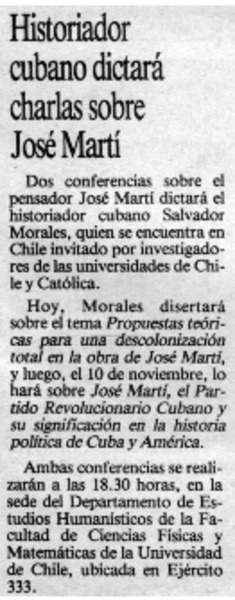 Historiador cubano dictará charlas sobre José Martí [artículo]