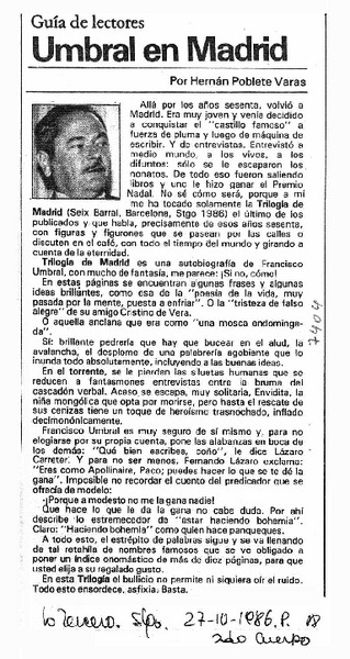 Umbral en Madrid [artículo] Hernán Poblete Varas.