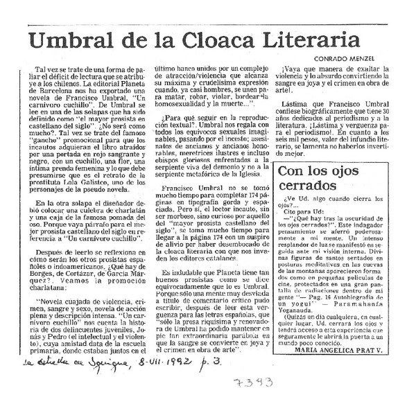 Umbral de la cloaca literaria [artículo] Conrado Menzel.