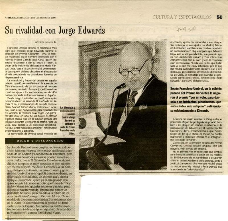 Su rivalidad con Jorge Edwards [artículo] Andrés Gómez.