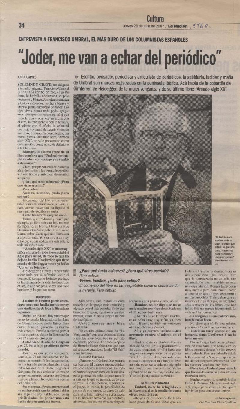 "Joder, me van a echar del periódico" [entrevista] [artículo] : Jordi, Galves.