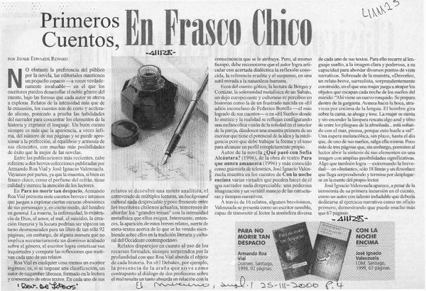 Primeros cuentos, en frasco chico [artículo] Javier Edwards Renard
