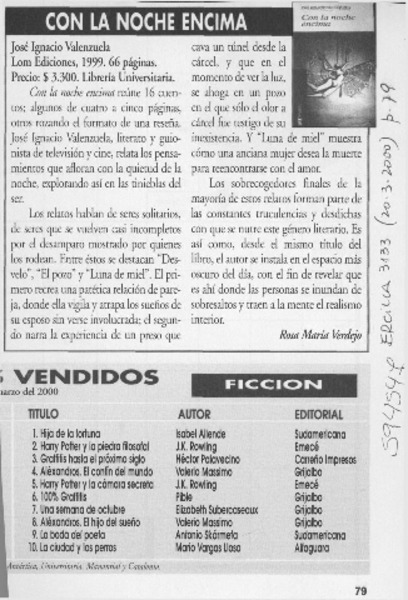 Autores chilenos - Valenzuela, José Ignacio - Con la noche encima
