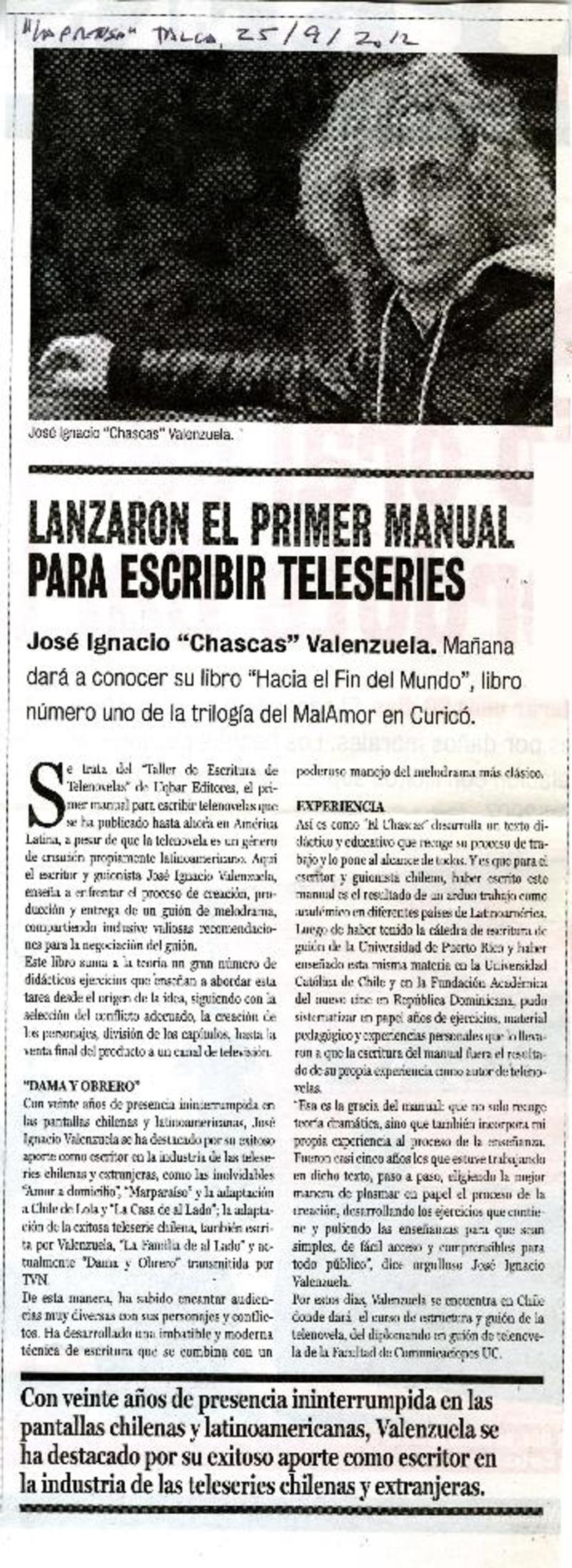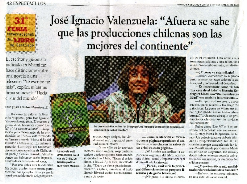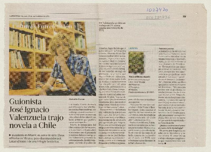 Guionista José Ignacio Valenzuela trajo novela a CHile [artículo] Gabriela García.