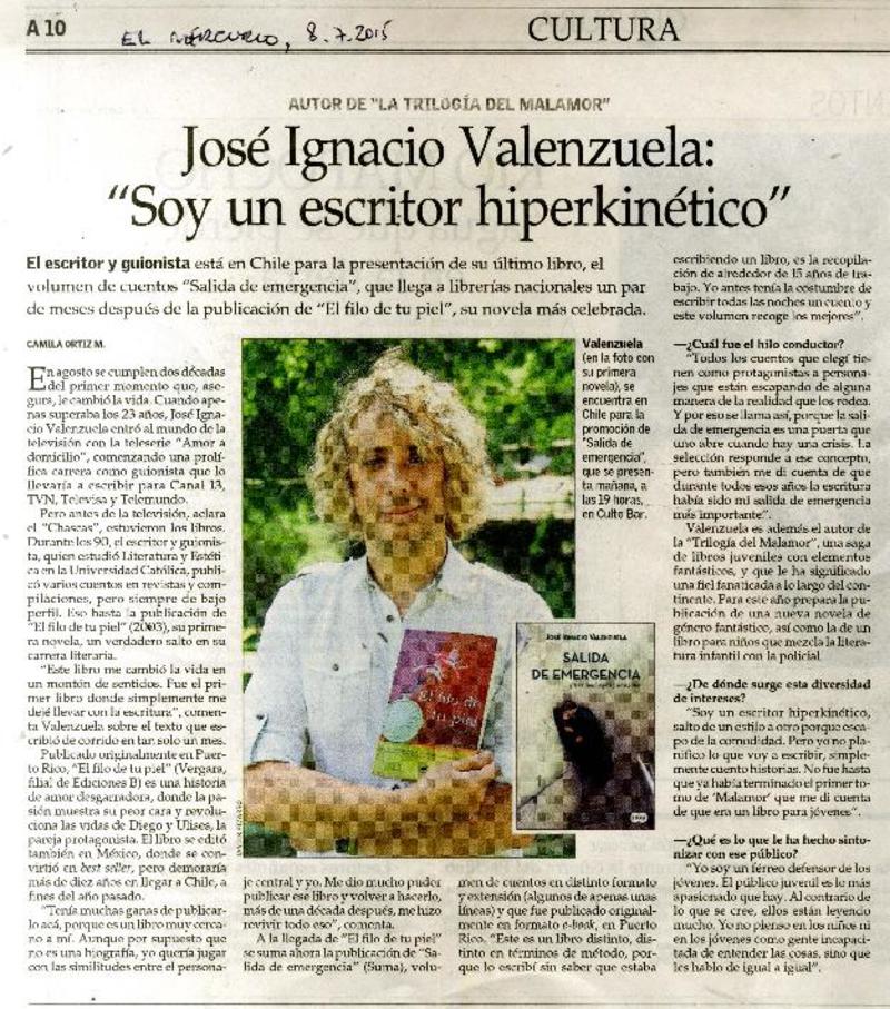 Autores chilenos - Entrevistas - Valenzuela, José Ignacio - "Salida de emergencia"