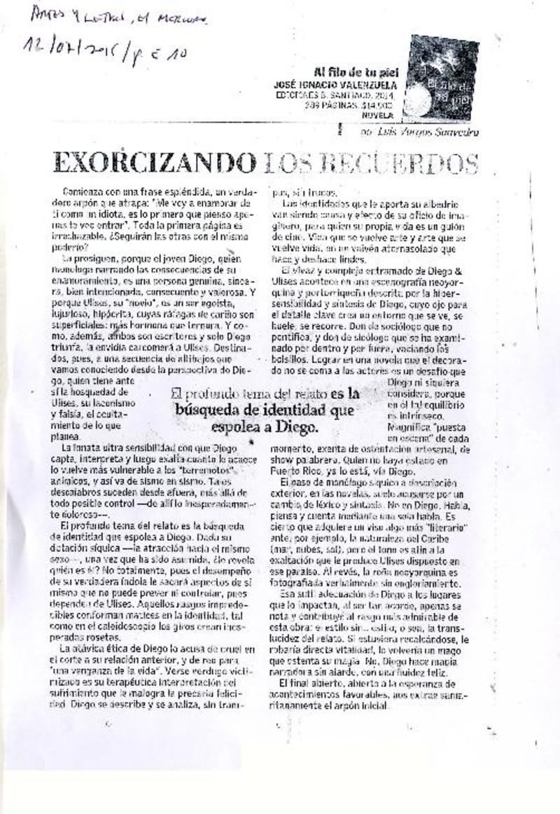 Exorcizando los recuerdos [artículo] Luis Vargas Saavedra.