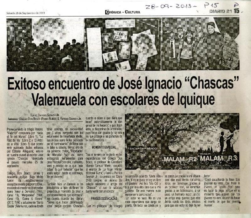 Exitoso encuentro de José Ignacio "Chascas" Valenzuela con escolares en Iquique [artículo] Patricio Sesnich.