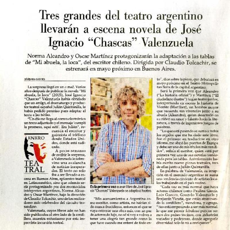Tres grandes del teatro argentino llevarán a escena novela de José Ignacio "Chascas" Valenzuela Bárbara Castro. [artículo]