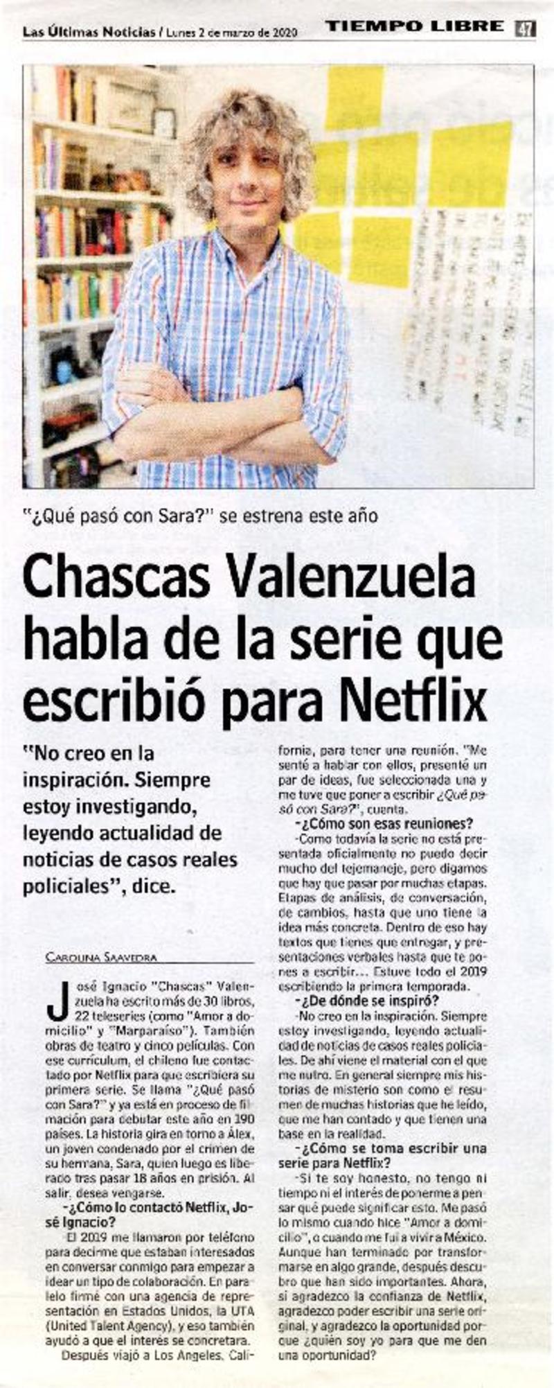 Chascas Valenzuela habla de la serie que escribió para Netflix [artículo] Carolina Saavedra.