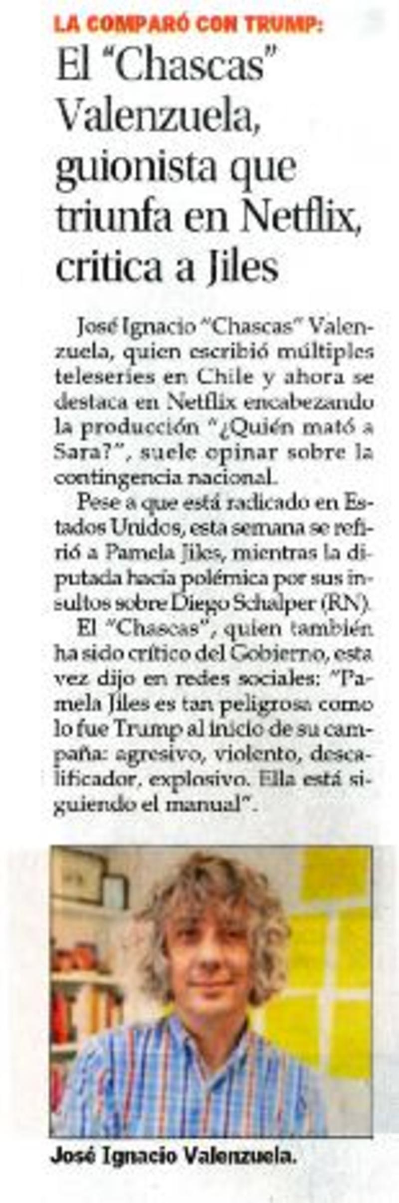 El "Chascas" Valenzuela guionista que triunfa en Netflix, critica a Jiles [artículo].