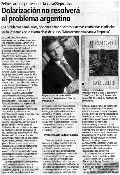 Dolarización no resolverá el problema argentino. [artículo]
